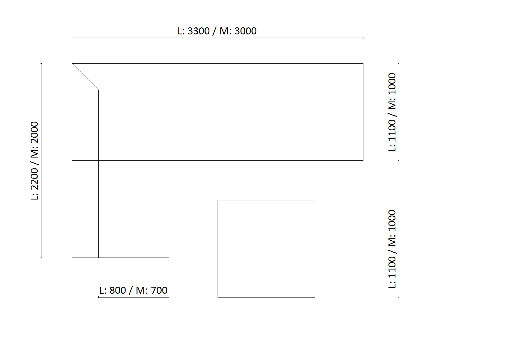 You can choose between sizes M and L. The size L modules offer 10 cm more seat depth and are 10 cm wider, so you can enjoy even more comfort in a spacious outdoor area.