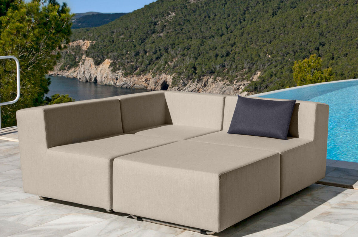 The unique design principle of completely covering the garden furniture with a particularly weather-resistant, water-repellent and skin-friendly fabric from boat building made it possible to implement the classic lounge design on garden furniture.