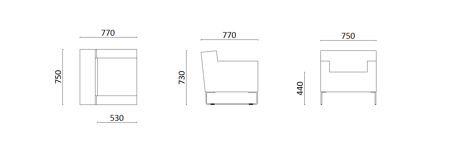 • Dimensions of the outdoor armchair: width: 75 cm x depth: 77.3 cm, height m. Backrest: 67 cm - seat height: 43 cm