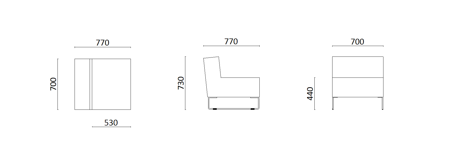 • Dimensions of the lounge chair: width: 75 cm x depth: 77.3 cm, height m. Backrest: 67 cm - seat height: 43 cm