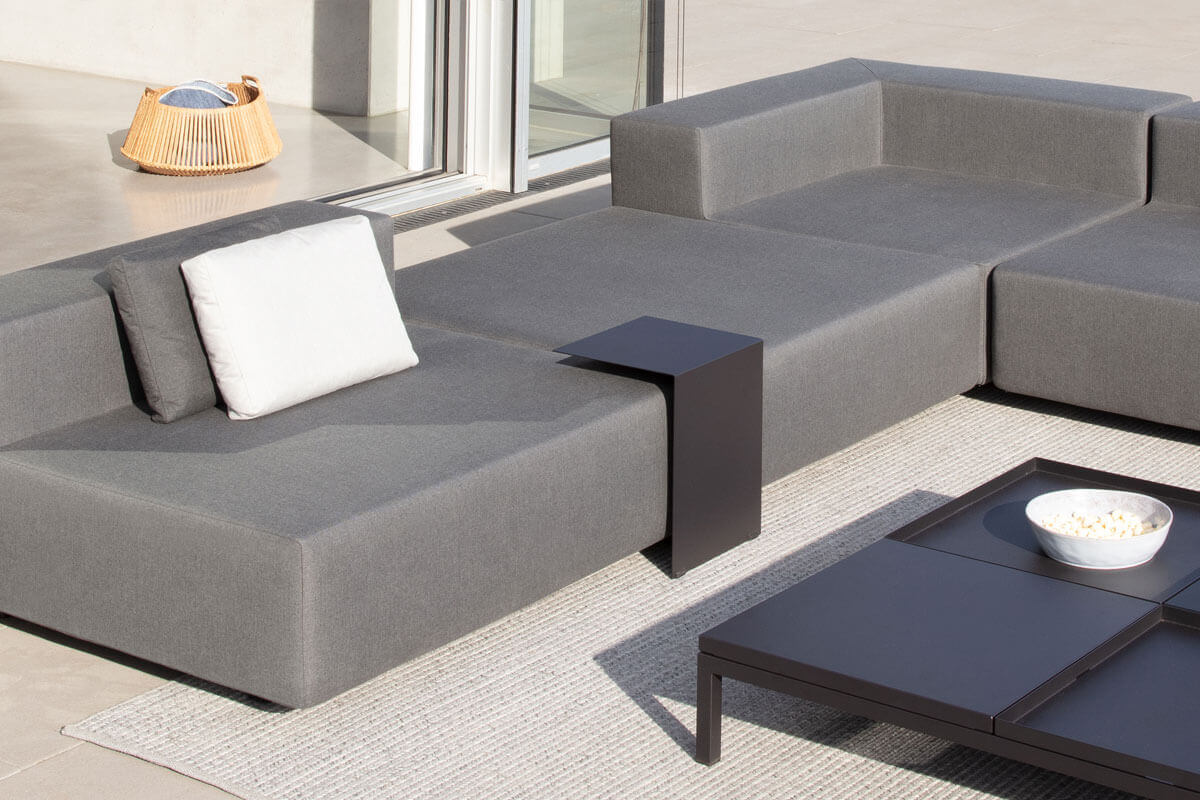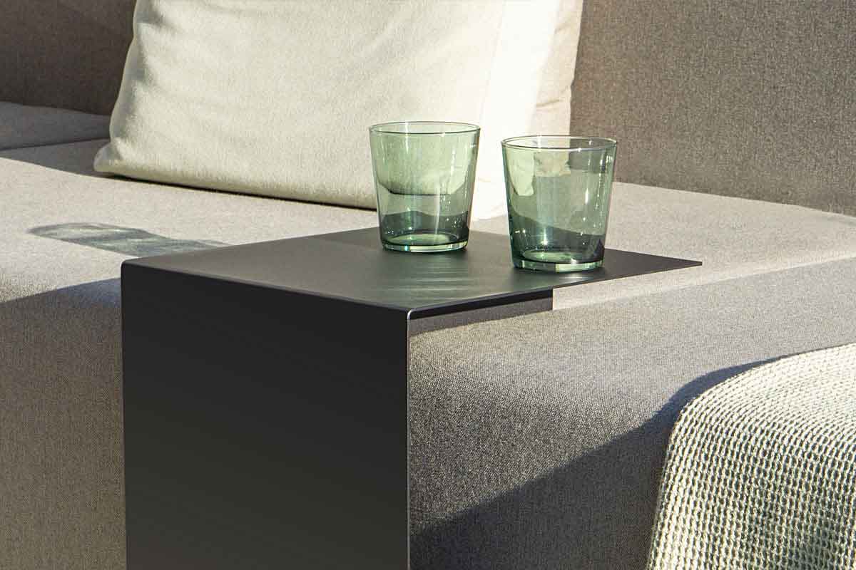 Small side tables can be placed wherever they are needed. Placing them directly next to lounge furniture creates small storage areas everywhere that can be used for drinks, sunglasses, books and other utensils.