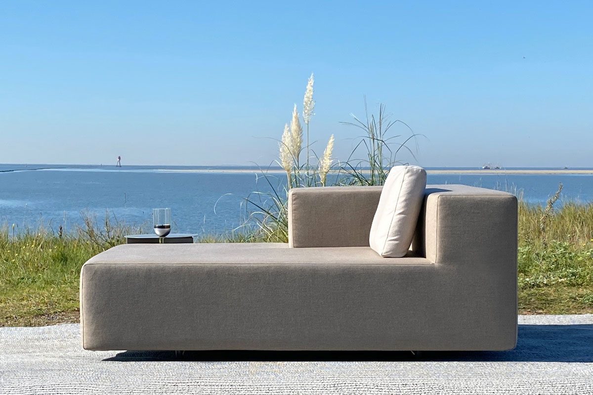 The CHAISE outdoor chaise longue can be ordered with an armrest on the left or right side. So you can choose the right sofa bed for your circumstances on the balcony or terrace.