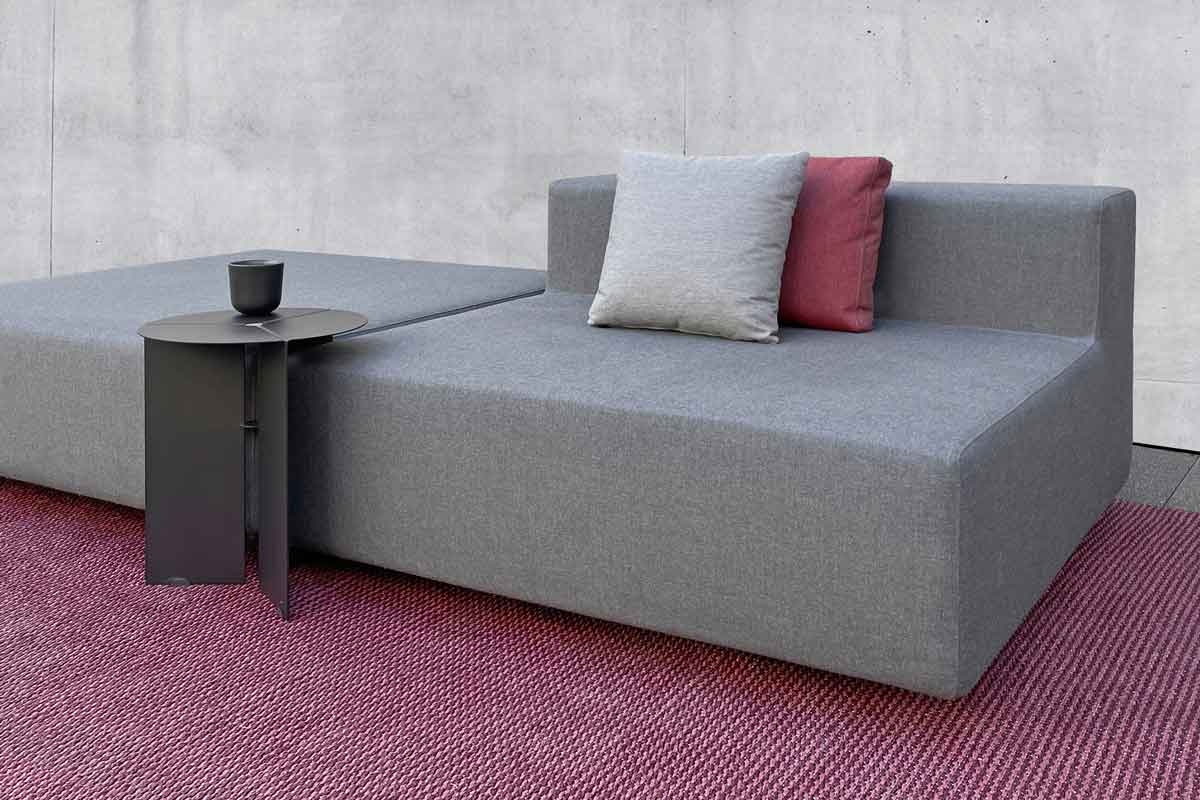The minimalist design was made possible through the use of a particularly waterproof fabric from yachting. By covering the outdoor armchair with this fabric, a unique design could be realized, which was previously only possible in the indoor lounge area.