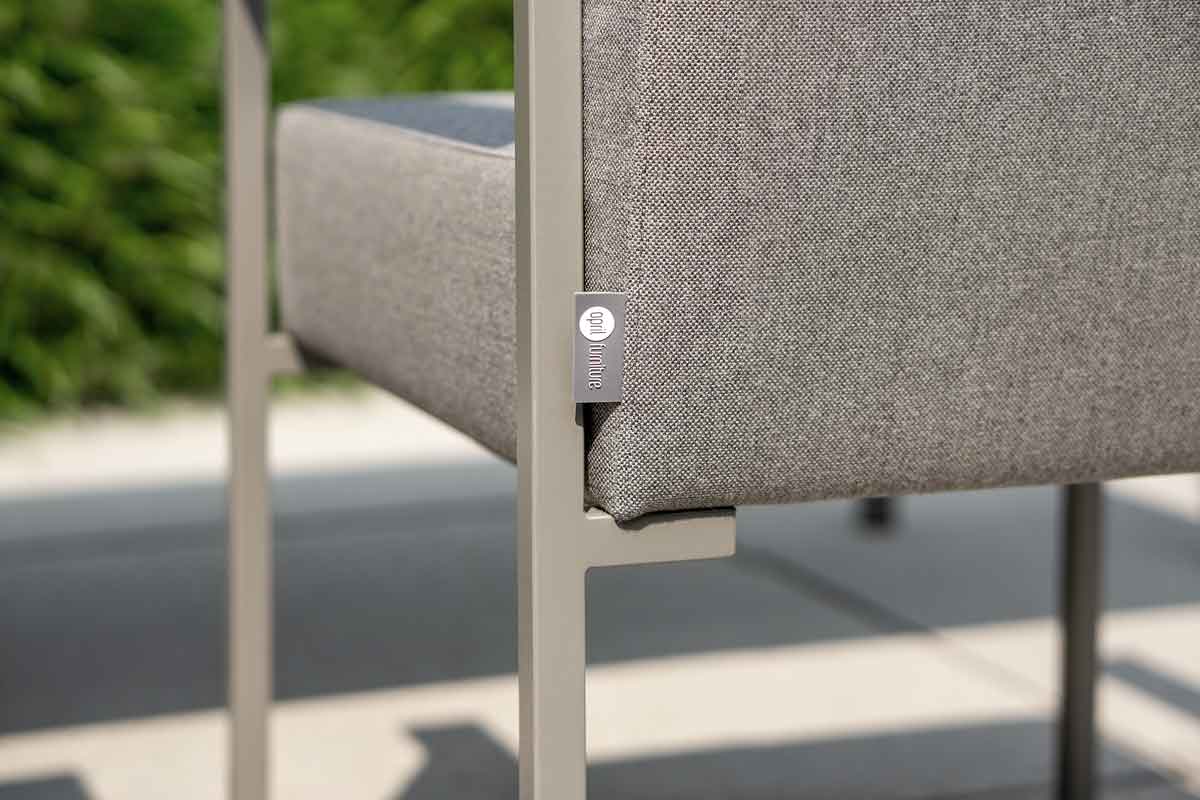 The outdoor chair KLA convinces with its clear forms. The angular aluminium profiles provide an interesting contrast to the soft upholstery of the seat or back element. The construction is logically structured and appears pleasantly tidy. The fastening element for the upholstery is stylistically repeated in the connection of the armrests. This creates an impressive design that flatters the restrained design. The comfortable designer garden chair KLA can be ordered in the 2 trendy colours taupe and anthracite.