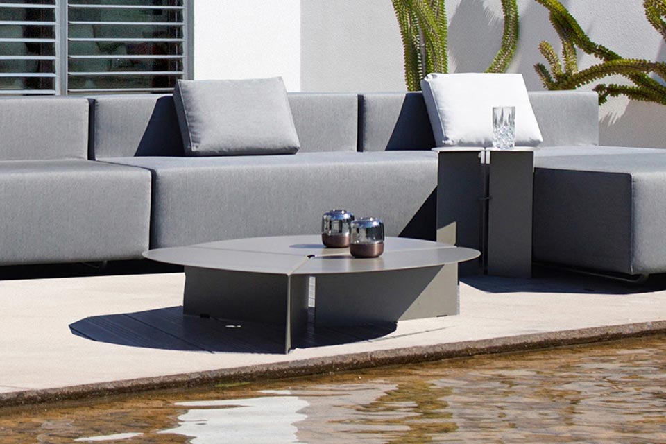 The practical outdoor side table is the ideal complement to the modern, minimalist design of our upholstered furniture. The designer model also fits other, high-quality lounge garden furniture.
